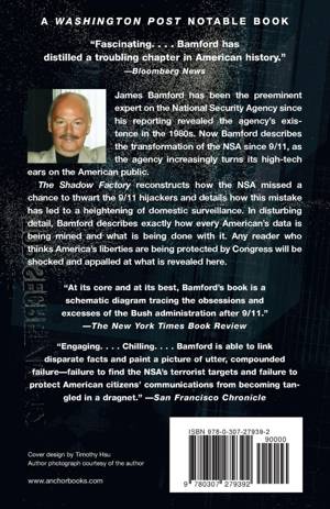 The Shadow Factory reconstructs how the NSA missed a chance to thwart the 9/11 hijackers and details how this mistake has led to a heightening of domestic surveillance. In disturbing detail, Bamford describes exactly how every American's data is being mined and what is being done with it. Any reader who thinks America's liberties are being protected by Congress will be shocked and appalled at what is revealed here.