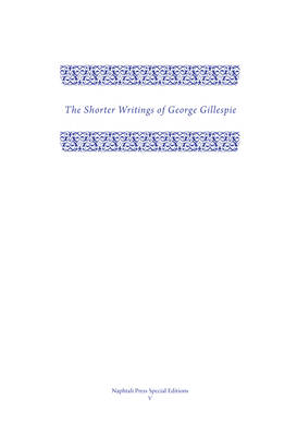 Volume 1. This first of three projected volumes in the Naphtali Press Special Editions series. Volume 1 includes, An Assertion of the Government of the Church of Scotland, which in two parts covers the office of ruling elder and the warrant for and authority of assemblies of the church above the local session of elders, a work "remarkable for its thoroughness and is moderation" (James Walker); and it includes four anonymously published tracts known to be by Gillespie, which includes perhaps his most controversial work, Wholesome Severity Reconciled with Christian Liberty. Also appearing will be brief notes from the sermon Gillespie preached soon after arriving in London for the Westminster Assembly on the topic of Why Christmas Day ought not to be Observed.