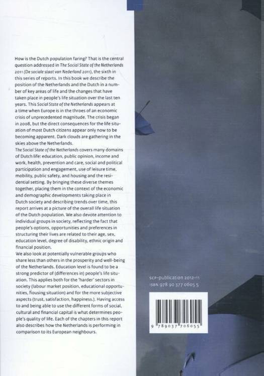 How is the Dutch population faring? The Social State of the Netherlands 2011 (De sociale staat van Nederland 2011), the sixth in this series of reports, describes changes that have taken place in key areas of Dutch people's lives over the last ten years. Europe is now in the throes of an economic crisis of unprecedented magnitude. The crisis began in 2008, but the direct consequences for the life situation of most Dutch citizens are only now becoming apparent. The Social State of the Netherlands 2011 covers many domains of Dutch life: education, public opinion, income and work, health, prevention and care, social and political participation and engagement, use of leisure time, mobility, public safety, and housing and the residential setting. By bringing these diverse themes together, placing them in the context of the economic and demographic developments taking place in Dutch society and describing trends over time, this report presents a picture of the overall life situation of the Dutch population.