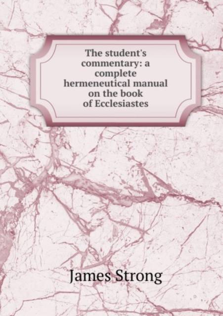 This book, "The student's commentary. a complete hermeneutical manual on the book of Ecclesiastes", by James Strong, is a replication of a book originally published before 1893. It has been restored by human beings, page by page, so that you may enjoy it in a form as close to the original as possible. This book was created using print-on-demand technology. Thank you for supporting classic literature.