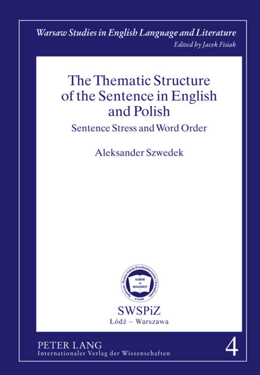 The initial aim of the book was to describe Polish equivalents of the English articles. The functions of the articles were found in Polish to be expressed by word order and sentence stress (in neutral intonation). Word order and sentence stress were also analysed in English in view of the different nature of word order. Native speakers were asked to read given texts, which were recorded, and to comment on the intonation. The author concludes that the functions of the articles are part of Functional Sentence Perspective (FSP) and that the general tendency is to put new information in final position. In Polish, this is achieved by word order and sentence stress, in English by stress and some syntactic means. Furthermore it is found that in both English and Polish, the noun determines the position of the sentence stress - it always falls on the new noun if such is present; in the absence of such a noun the stress is put on the next available word as far to the end of the sentence as possible.