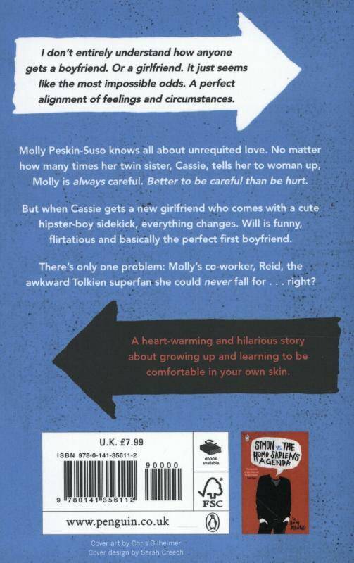 Then a cute new girl enters Cassie's orbit, and for the first time ever, Molly's cynical twin is a lovesick mess. Meanwhile, Molly's totally not dying of loneliness-except for the part where she is. Luckily, Cassie's new girlfriend comes with a cute hipster-boy sidekick. Will is funny, flirtatious, and just might be perfect crush material. Maybe more than crush material. And if Molly can win him over, she'll get her first kiss and she'll get her twin back.