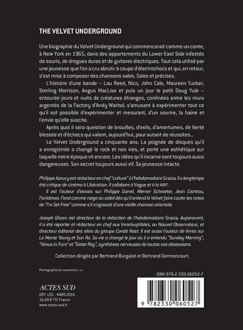 Le Velvet Underground a cinquante ans. La poignée de disques qu'il a enregistrée a changé le rock et nos vies, et porté une esthétique sur laquelle notre époque vit encore. Les idées qu'il incarne sont toujours aussi dangereuses. Son secret toujours aussi vif. Sa jeunesse intacte.