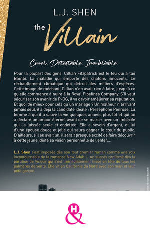 À propos de l’autrice L.J. Shen s’est imposée dès son tout premier roman comme une voix incontournable de la romance New Adult – un succès confirmé dès la parution de Vicious qui s’est immédiatement hissé en tête de tous les palmarès de vente. Elle vit en Californie du Nord avec son mari et leur petit garçon.
