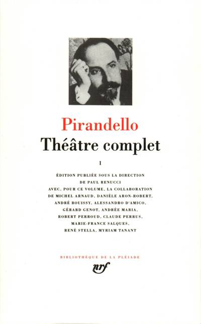 "Pirandello (1867-1936) aborda le théâtre à travers les nouvelles et les romans. Il découvrait tôt que l'homme est "un, personne et cent mille" et, à la veille du fascisme, auquel il adhéra cependant, le thème de la destruction de l'identité individuelle hantait sa réflexion. Nul héros viril, nulle gloire nationale sur cette scène, mais des âmes en peine, placées dans des intérieurs bourgeois, exposés aux éclairages, du "théâtre dans le théâtre". Pour qu'à la fin les personnages déposent le "masque" social et paraissent "nus"". Marziano Guglielminetti.