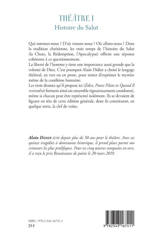 Qui sommes-nous ? D'où venons-nous ? Où allons-nous ? Dans la tradition chrétienne, les trois temps de l'histoire du Salut (la Chute, la Rédemption, l'Apocalypse) offrent une réponse cohérente à ce questionnement. La liberté de l'homme y tient une importance aussi grande que la volonté de Dieu. C'est pourquoi Alain Didier a choisi le langage théâtral, en vers ou en prose, pour tenter d'exprimer le mystère même de la condition humaine.