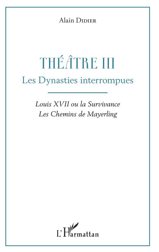Bourbon, Habsbourg, Romanov : trois « dynasties interrompues » qui résument l'Ancien Régime européen. Avant d'envisager, au tome IV de son théâtre, l'abdication de Nicolas II, Alain Didier nous invite, sans conformisme excessif, à revisiter deux énigmes : la possible survivance de Louis XVII et le suicide de l'archiduc Rodolphe à Mayerling.