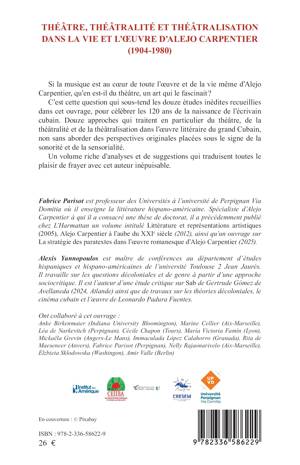Si la musique est au coeur de toute l'oeuvre et de la vie même d'Alejo Carpentier, qu'en est-il du théâtre, un art qui le fascinait ? C'est cette question qui sous-tend les douze études inédites recueillies dans cet ouvrage, pour célébrer les 120 ans de la naissance de l'écrivain cubain. Douze approches qui traitent en particulier du théâtre, de la théâtralité et de la théâtralisation dans l'oeuvre littéraire du grand Cubain, non sans aborder des perspectives originales placées sous le signe de la sonorité et de la sensorialité. Un volume riche d'analyses et de suggestions qui traduisent toutes le plaisir de frayer avec cet auteur inépuisable.