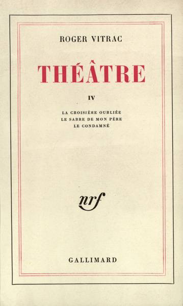 Ce volume, le dernier de l'oeuvre théâtrale de l'auteur de Victor qui connut sur la scène un succès éclatant, comprend trois texte : La Croisière oubliée, pièce radiophonique, Le Sabre de mon père, comédie en trois actes créée en 1951 au Théâtre de Paris, et Le Condamné, comédie. L'école surréaliste à laquelle appartient Roger Vitrac l'a doté d'une plume à la fois magique et concrète : il s'en sert aussi bien pour écrire une fable mousseuse et pétillante que pour construire un vaudeville où les situation psychologiques, les rebondissements d'action, les silences eux-mêmes sont conduits d'une manière naturellement lumineuse et cruelle, animés par un esprit où le partage de la poésie, de la gravité et du rire sont maintenus d'un bout à l'autre dans un équilibre parfait.