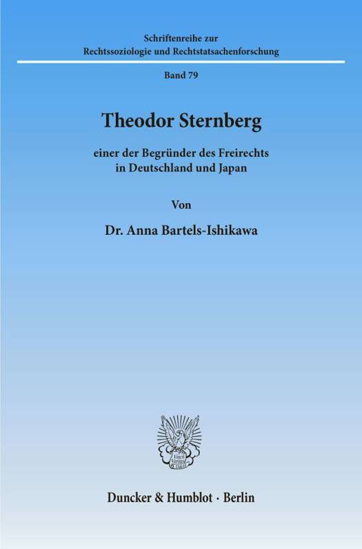 Theodor Sternberg (Berlin *1878, +1950 Tokyo) war neben Radbruch und Kantorowicz einer der Vorreiter der Freirechtslehre in Deutschland. Bereits 1904, noch vor seinem Freund Kantorowicz, veröffentlichte er seine "Allgemeine Rechtslehre", in der er für das Freirecht eintrat. Er kritisierte die damals herrschende Hermeneutik und Rechtsquellenlehre und stellte ihr eine eigene gegenüber. Sein freirechtliches Konzept basierte auf einer von ihm entworfenen psychologisch-soziologischen Methode, die sich an Wilhelm Wundt anschließt. Dieses Werk fand bei seinen Zeitgenossen, unter anderem bei Ehrlich, gute Aufnahme. 1908 festigte er seinen Ruf als Freirechtler mit seinem Werk "J. H. v. Kirchmann und seine Kritik an der Rechtswissenschaft". 1912 publizierte er seine "Einführung in die Rechtswissenschaft", in der er sich noch stärker für die Freirechtsbewegung einsetzte. Teilweise an Savigny anknüpfend, erkannte er der Rechtswissenschaft bei der Rechtsfindung eine herausragende Position zu. 1913 an die Kaiserliche Universität in Tokyo als Professor für deutsches Recht berufen, setzte er sich weiterhin für das Freirecht ein; sein großer Schülerkreis, zu dem namhafte Rechtswissenschaftler wie Tanaka, Kawashima und Takane zählten, führten seine Theorien fort und verankerten sie in der japanischen juristischen Methodenlehre.Auf der Basis seines Nachlasses werden erstmals sein Leben und sein Engagement gegen die Nationalsozialisten nachgezeichnet. Ein komplettes Nachlaß- und Werkverzeichnis vervollständigt den Überblick.