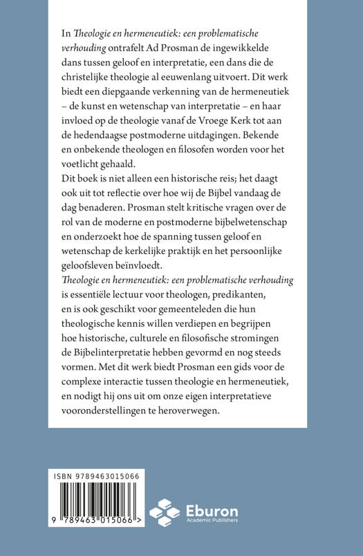 Dit boek is niet alleen een historische reis; het daagt ook uit tot reflectie over hoe wij de Bijbel vandaag de dag benaderen. Prosman stelt kritische vragen over de rol van de moderne en postmoderne bijbelwetenschap en onderzoekt hoe de spanning tussen geloof en wetenschap de kerkelijke praktijk en het persoonlijke geloofsleven beïnvloedt. Theologie en hermeneutiek: een problematische verhouding is essentiële lectuur voor theologen, predikanten, en is ook geschikt voor gemeenteleden die hun theologische kennis willen verdiepen en begrijpen hoe historische, culturele en filosofische stromingen de Bijbelinterpretatie hebben gevormd en nog steeds vormen. Met dit werk biedt Prosman een gids voor de complexe interactie tussen theologie en hermeneutiek, en nodigt hij ons uit om onze eigen interpretatieve vooronderstellingen te heroverwegen.
