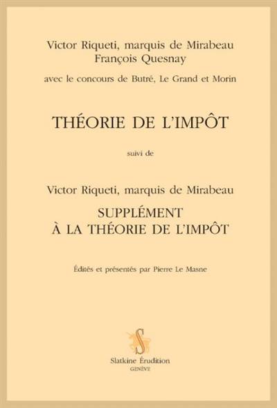 Ce volume re-donne au public, dans une édition critique assortie de notes et d'explications, deux ouvrages liés entre eux : la Théorie de l'impôt (1760) du marquis de Mirabeau et de François Quesnay (avec le concours de Butré, Le Grand et Morin), et le Supplément à la Théorie de l'impôt (1776) du marquis de Mirabeau. Le volume permet de comprendre la doctrine économique et fiscale des Physiocrates et son évolution entre 1760 et 1776. La Théorie de l'impôt est présentée, pour la première fois, avec les annotations de Quesnay sur les manuscrits de l'ouvrage.