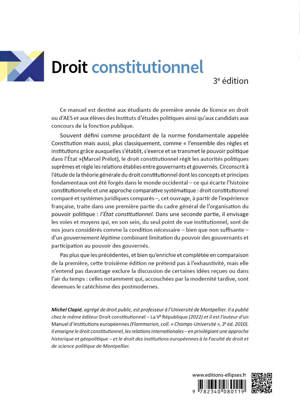 Michel Clapié, agrégé de droit public, est professeur à l’Université de Montpellier. Il a publié chez le même éditeur Droit constitutionnel – La Ve république (2022) et il est l’auteur d’un Manuel d’institutions européennes (Flammarion, coll. « Champs-Université », 3e éd. 2010). Il enseigne le droit constitutionnel, les relations internationales – en privilégiant une approche historique et géopolitique – et le droit des institutions européennes à la Faculté de droit et de science politique de Montpellier.