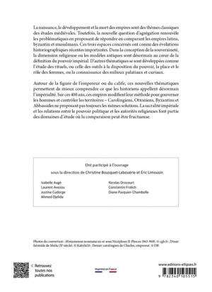Autour de la figure de l’empereur ou du calife, ces nouvelles thématiques permettent de mieux comprendre ce que les historiens appellent désormais l’impérialité. Sur ces 400 ans, ces empires modifient leur méthode pour gouverner les hommes et contrôler territoires, Carolingiens, Ottoniens, Byzantins et Abbassides ne proposant pas toujours les mêmes solutions. La sacralité impériale et les relations entre le pouvoir politique et les autorités religieuses font partie des domaines d’étude où la comparaison peut être fructueuse.