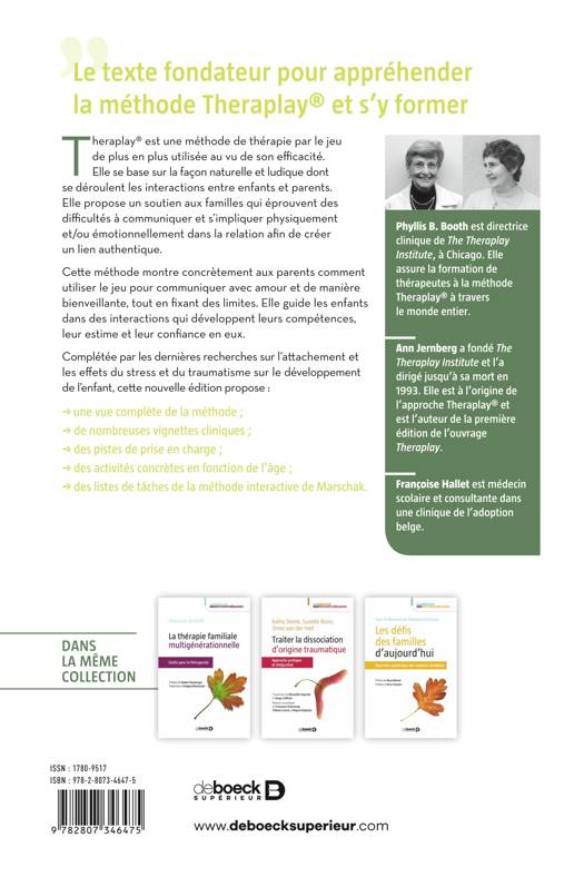 Theraplay® est une méthode de thérapie par le jeu largement utilisée dans les pays anglo-saxons, qui s'appuie sur le travail de Phyllis Booth et Ann Jernberg. Elle se base sur la façon naturelle et ludique dont se déroulent les interactions entre enfants et parents pour proposer un soutien aux familles en difficulté et les aider à développer réactivité et structure essentielles pour le développement de l'enfant.