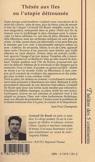Le héros athénien va, une fois de plus, affronter le terrible Minotaure mais les certitudes antiques ne sont plus les nôtres : la bête, errant dans son labyrinthe, n'est peut-être pas le monstre que l'on croit. De Boodt opte pour une forme aussi insolite que roborative. Parodiant le théâtre classique, sa pièce, écrite en vers lyrico-burlesques, trouve un ton plaisant et solennel tout à fait adapté au propos.