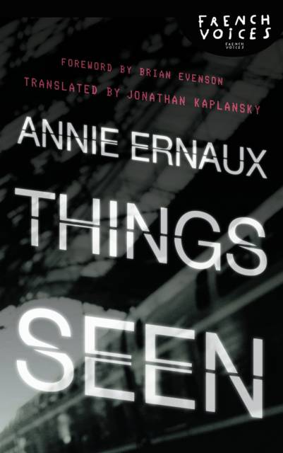 "Annie Ernaux's work," wrote Richard Bernstein in the New York Times, "represents a severely pared-down Proustianism, a testament to the persistent, haunting and melancholy quality of memory." In the New York Times Book Review, Kathryn Harrison concurred: "Keen language and unwavering focus allow her to penetrate deep, to reveal pulses of love, desire, remorse." In this "journal" Ernaux turns her penetrating focus on those points in life where the everyday and the extraordinary intersect, where "things seen" reflect a private life meeting the larger world. From the war crimes tribunal in Bosnia to social issues such as poverty and AIDS; from the state of Iraq to the world's contrasting reactions to Princess Diana's death and the starkly brutal political murders that occurred at the same time; from a tear-gas attack on the subway to minute interactions with a clerk in a store: Ernaux's thought-provoking observations map the world's fleeting and lasting impressions on the shape of inner life.