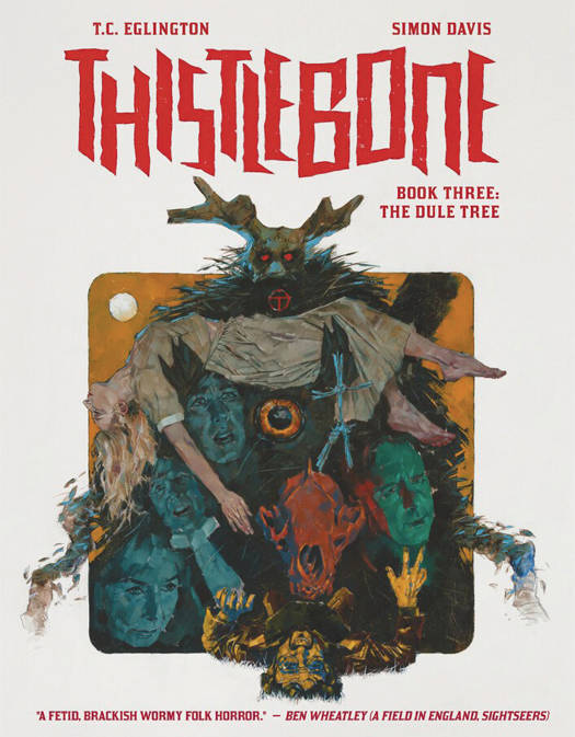 The third story in the break-out 2000 AD horror graphic novel trilogy series, in the vein of Ben Wheatley's In the Earth. After the death of Malcolm Kinniburgh, who had previously kept the Thistlebone legend alive, the local Harrowvale constabulary find clues that lead them to investigate the abandoned film production of a 1970s folk horror film, The Dule Tree. Based on a harrowing account from the seventeen hundreds where thirteen innocent women and one man were hanged during the witch trials, the film itself ran into production problems, the source of which has remained a mystery for fifty years.