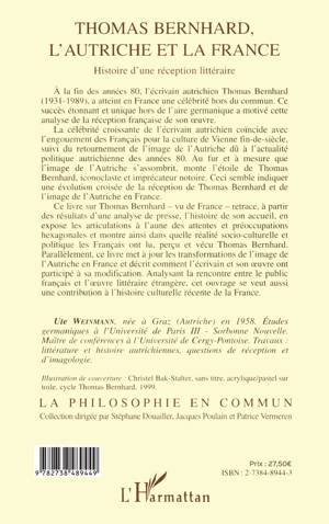 Ce livre sur Thomas Bernhard - vu de France - retrace, à partir des résultats d'une analyse de presse, l'historie de son accueil, en expose les articulations à l'aune des attentes et préoccupations hexagonales et montre ainsi dans quelle réalité socio-culturelle et politique les français ont lu, perçu et vécu Thomas Berhnard. Parallèlement il met à jour les transformations de l'image de l'Autriche en France et décrit comment l'écrivain et son œuvre ont participé à sa modification.