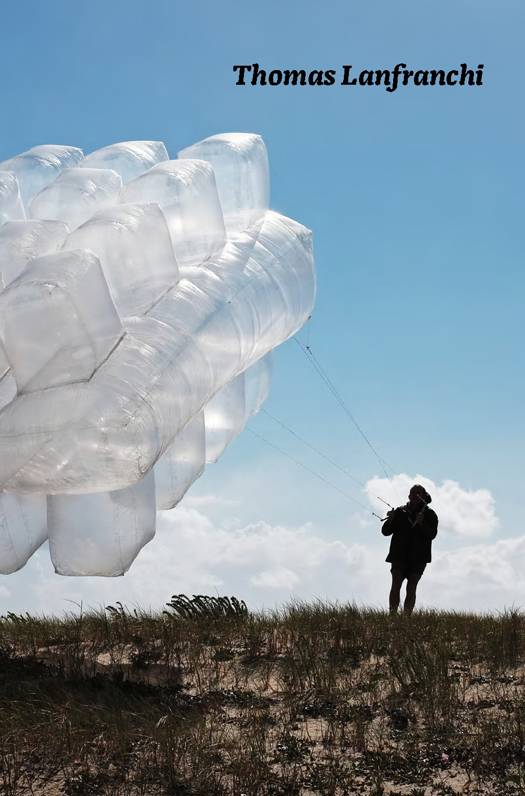 Thomas Lanfranchi est l’un de ces artistes rares dont on guette avec un intérêt toujours renouvelé la moindre manifestation. Avec la même opiniâtreté qu’y mettrait un savant, il mène depuis des années une même recherche, en marge des grands circuits spectaculaires, quelque part aux confins – et au point instable, sinon même improbable où ils se croisent – de la sculpture, de la performance et du dessin. Partons de la première : Thomas Lanfranchi réalise de grandes formes géométriques. Nul marbre ici cependant, ni rien qui s’en approche. Il prend au rebours les fantasmes de pérennité, de solidité, de masse qui hantent encore souvent la sculpture. Ces formes, en effet, il les fabrique à partir de sacs plastiques, aux couleurs que lui propose l’industrie. Le geste du sculpteur, chez lui, n’est plus que dans la découpe et que dans l’assemblage, à l’aide d’un ruban adhésif, de cette pauvre et fragile membrane. Il appelle pour qu’elle se réalise l’apport d’un élément autre : le vent. Il faut que cela gonfle et s’envole. Et c’est toujours une aventure de voir ses formes s’élever et se découper sur le paysage, à peine retenues à terre par quelques fils. Parfois cela tient – fût-ce pour ce temps par définition court que dure l’évènement –, parfois cela craque d’emblée. L’artiste a beau déployer de patients calculs pour réaliser ses pièces, elles doivent toujours faire face, en situation, aux aléas des forces naturelles. En même temps qu’elle s’encanaille ainsi avec la performance, la sculpture, réduite à cette membrane, engage aussi chez Thomas Lanfranchi un rapport essentiel au dessin : pour déployer qu’il soit dans l’espace et quand bien même il est de plastique, c’est bien un trait, en effet, qui fait pièces. Et c’est par là que ce premier aspect de l’oeuvre – la sculpture pour le redire vite et employer ce qu’on vient de voir n’être qu’une facilité de langage – en rejoint un second : une pratique plus classique du dessin. Plus classique, au double sens où elle se fait sur le papier et où elle accompagne, celle-là, l’artiste tous les jours. Y défilent des animaux, des personnages, découpés – point de hasard – dans les mêmes sacs plastiques, que reprend et complète le crayon.