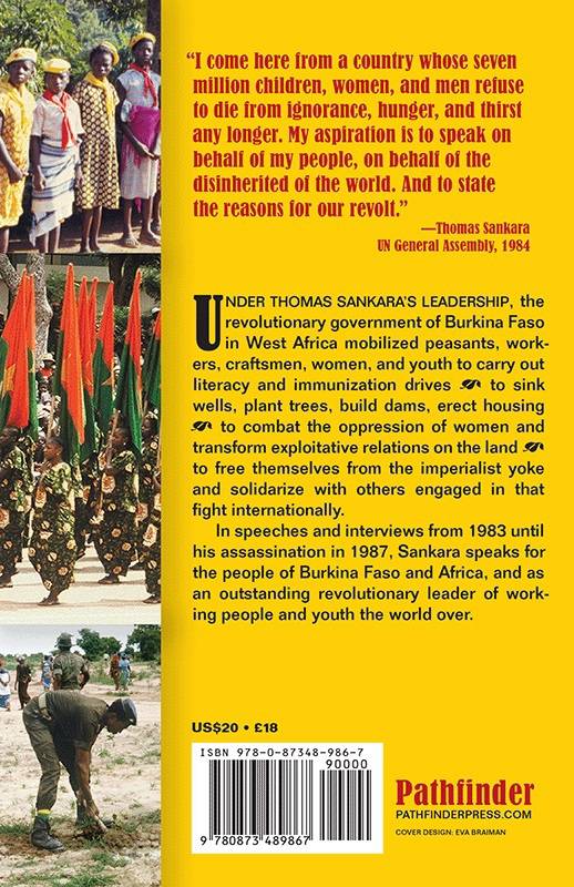 Under Sankara’s leadership, the revolutionary government of Burkina Faso in West Africa set an electrifying example. Peasants, workers, women, and youth mobilized to carry out literacy and immunization drives; to sink wells, plant trees, build dams, erect housing; to combat the oppression of women and transform exploitative relations on the land; to free themselves from the imperialist yoke and solidarize with others engaged in that fight internationally. In speeches and interviews from 1983 until his assassination in 1987, Sankara speaks for the people of Burkina Faso and Africa, and as an outstanding revolutionary leader of working people and youth the world over.