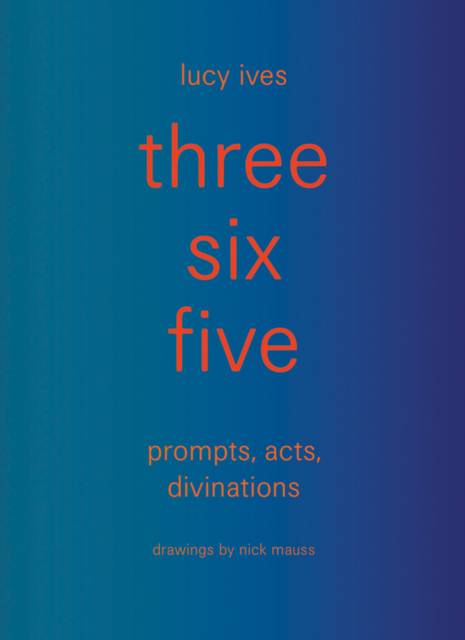 Though there are 365 exercises for writing in this book, three six five is not simply a book of writing exercises. It is a "how-to" book of questions rather than answers, a diary of contemplation and imagination, an ars poetica of expanding possibility. Tracing the lineage of Yoko Ono's Grapefruit and Raymond Queneau's Exercises in Style, Lucy Ives here offers encouragement, candor and a deep appreciation for the vagaries, wonders and challenges of writing life. These prompts--in alchemical combinations with drawings by Nick Mauss--offer ways to become a (better) writer through observation, reorientation, inquiry, play and engagement with the world and its inhabitants. They invite the writer to learn and unlearn, to mine memory and forgetting, to enter impossible spaces and create new ways of telling time, to inhabit multiple, other and conflicting perspectives, to discover the elasticity of language and its constraints, to write by drawing, walking, listening and by being distracted.