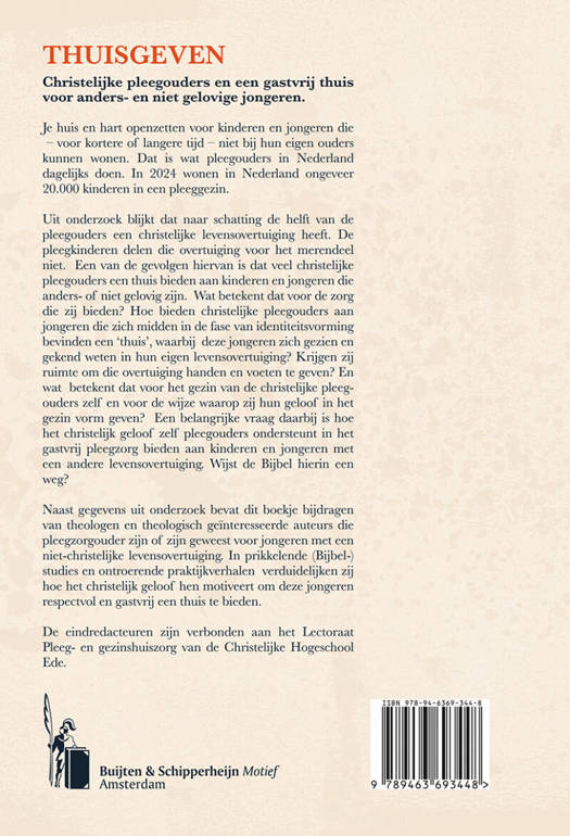 Dit boek onderzoekt hoe christelijke pleegouders een gastvrij thuis bieden aan kinderen en jongeren die vaak een andere levensovertuiging hebben. In Nederland wonen zo’n 20.000 kinderen in een pleeggezin; de helft van de pleegouders is christen. Wat betekent dat voor de zorg, het gezin en het geloof? Dit boek combineert onderzoeksgegevens met praktijkverhalen en theologische reflecties van pleegouders. Het laat zien hoe geloof inspireert tot respectvolle zorg en hoe de Bijbel richting kan geven in het omgaan met verschillen. Een waardevolle bijdrage voor iedereen die betrokken is bij pleegzorg en zoekt naar verbinding tussen geloof en opvoeding.