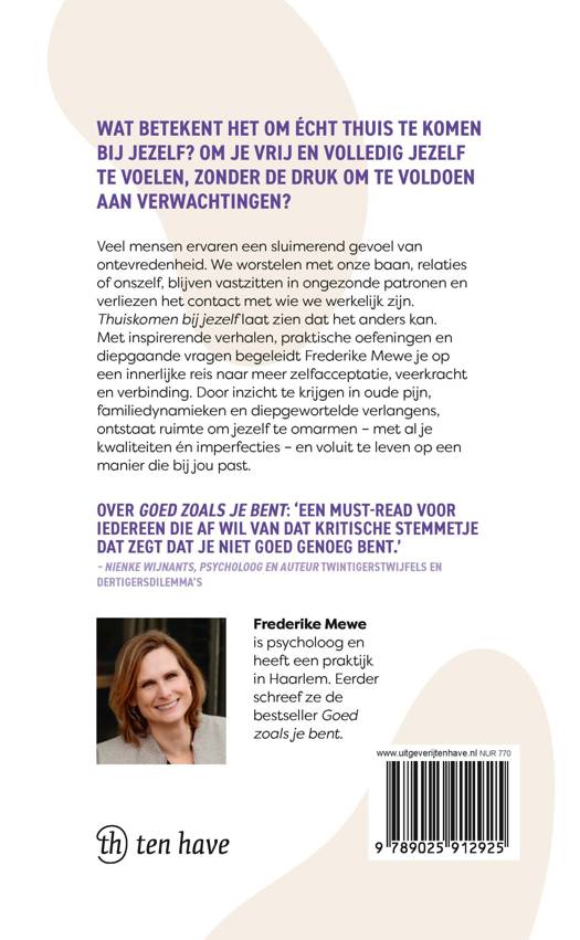 Thuiskomen bij jezelf laat zien dat het anders kan. Door inzicht te krijgen in oude pijn, familiedynamieken en verlangens ontdek je wie je diep vanbinnen bent en leer je jezelf waarderen met al je kwaliteiten en imperfecties. Zo creëer je ruimte voor nieuwe keuzes en een diepere verbinding met jezelf en anderen. Met inspirerende verhalen, praktische oefeningen en diepgaande vragen begeleidt Frederike Mewe je op een innerlijke reis naar zelfacceptatie, persoonlijke groei en veerkracht.