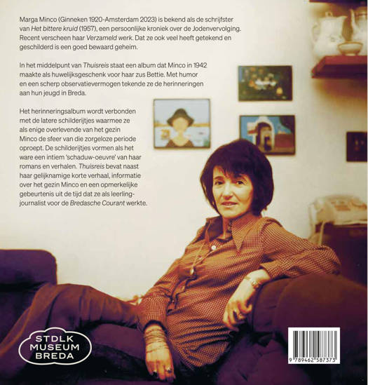 Een indringend beeld van de jonge jaren van Marga Minco In het middelpunt van Thuisreis staat een album dat Minco in 1942 maakte als huwelijksgeschenk voor haar zus Bettie. Met humor en een scherp observatievermogen tekende ze de herinneringen aan hun jeugd in Breda.