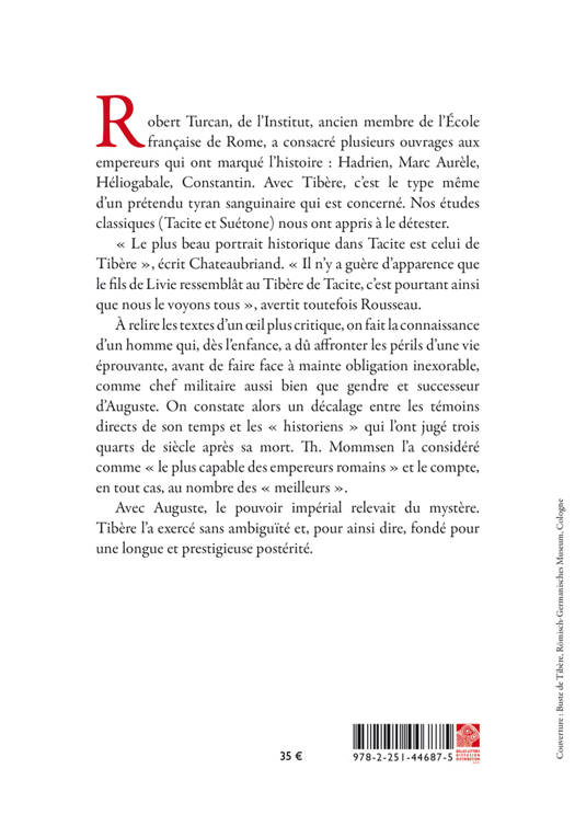Robert Turcan, de l’Institut, ancien membre de l’École française de Rome, a consacré plusieurs ouvrages aux empereurs qui ont marqué l’histoire : Hadrien, Marc Aurèle, Héliogabale, Constantin. Avec Tibère, c’est le type même d’un prétendu tyran sanguinaire qui est concerné. Nos études classiques (Tacite et Suétone) nous ont appris à le détester.