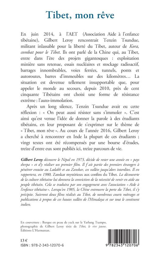 En 2014 Gilbert Leroy rencontrait Tenzin Tsundue, militant pour la liberté du Tibet. Ils ont parlé de la Chine qui, au Tibet, entre dans l'ère des projets gigantesques : exploitation minière sans retenue, essais nucléaires et stockage radioactif, barrages innombrables... Depuis 2010, cent cinquante Tibétains ont choisi une forme de résistance extrême à ceci : l'auto-immolation. Après un long silence, Tenzin Tsundue avait eu cette réflexion : « On peut aussi résister sans s'immoler ». C'est ainsi qu'est venue l'idée de donner la parole à des étudiants tibétains, en leur proposant de s'exprimer sur le thème de « Tibet, mon rêve ». Au cours de l'année 2016, Gilbert Leroy a cherché à rencontrer la plupart de ces étudiants, treize d'entre eux sont publiés ici, treize parcours de vie.