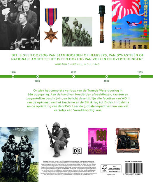 Ontdek het complete verloop van de Tweede Wereldoorlog in één oogopslag. Aan de hand van honderden afbeeldingen, kaarten en toegankelijke beschrijvingen belicht deze tijdlijn alle facetten van WO II: van de opkomst van het fascisme en de Blitzkrieg tot D-day, Hiroshima en de oprichting van de NAVO. Leer de globale impact kennen van wat werkelijk een 'wereld-oorlog' was.