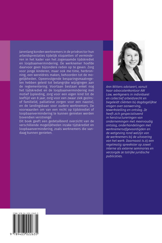 Dit boek geeft een gedetailleerd overzicht van de verschillende mogelijkheden inzake tijdskrediet en loopbaanvermindering, zoals werknemers die vandaag kunnen genieten.