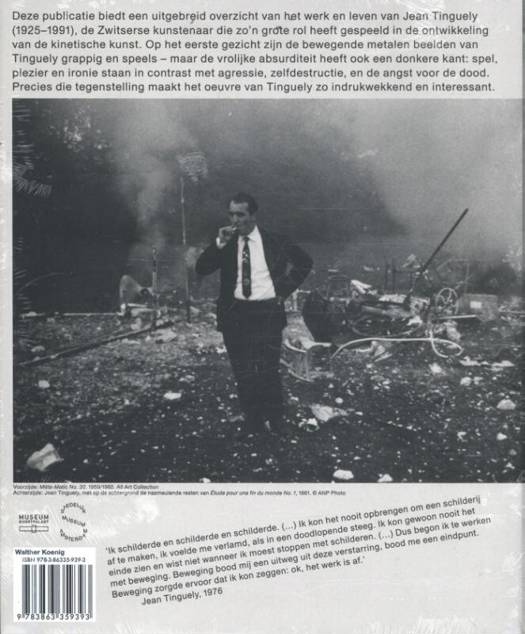 Deze publicatie biedt een uitgebreid overzicht van het werk en leven van Jean Tinguely (1925-1991), de Zwitserse kunstenaar die zo'n grote rol heeft gespeeld in de ontwikkeling van de kinetische kunst. Op het eerste gezicht zijn de bewegende metalen beelden van Tinguely grappig en speels - maar de vrolijke absurditeit heeft ook een donkere kant: spel, plezier en ironie staan in contrast met agressie, zelfdestructie, en de angst voor de dood. Precies die tegenstelling maakt het oeuvre van Tinguely zo indrukwekkend en interessant. 'Ik schilderde en schilderde en schilderde. ( …) Ik kon het nooit opbrengen om een schilderij af te maken, ik voelde me verlamd, als in een doodlopende steeg. Ik kon gewoon nooit het einde zien en wist niet wanneer ik moest stoppen met schilderen. ( …) Dus begon ik te werken met beweging. Beweging bood mij een uit weg uit deze verstarring, bood me een eindpunt. Beweging zorgde ervoor dat ik kon zeggen: ok, het werk is af.' Jean Tinguely, 1976