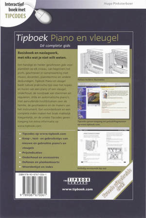 Een piano of een vleugel kopen? Tipboek Piano en vleugel vertelt je alles wat je weten moet om een goede keuze te maken. Ook onderhoud, stemmen en accessoires komen uitgebreid aan bod. Ruim dertig pianisten, pianostemmers, technici, docenten en andere kenners werkten mee aan deze handige gids. Geschreven in glasheldere taal, volop geïllustreerd en met Tipcodes waarmee je kunt horen wat je leest.