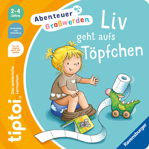 Wie ist das mit dem Töpfchen? Ab und zu wird Liv noch gewickelt. Aber nicht mehr lange - immer öfter klappt es ohne Windel. Mit Papa sucht Liv ein Töpfchen mit einem Drachen aus. Das nimmt sie auch mit in den Garten und an den See. Im Kindergarten traut sich Liv bald auf die Toilette. Mit Treppe und Toilettensitz funktioniert es auch zu Hause. Liebevolle Illustrationen und kindgerechte Texte begleiten die Kinder auf dem Weg zum Sauberwerden. Abschließend fasst ein Hörspiel die Geschichte aus Sicht der Kinder zusammen. In dieser tiptoi® Reihe für Kinder ab 2 Jahren dreht sich alles um das "Abenteuer Großwerden". Wichtige Themen aus dem Kinderalltag werden liebevoll thematisiert und realitätsnah illustriert. In jedem Buch erlebt ein anderes Kind der Freundesgruppe eine spannende Geschichte und meistert eine große Herausforderung. Die kindgerechten Texte und ein Hörspiel am Ende machen altersrelevante Themen interaktiv und selbstständig erlebbar. tiptoi-Stift nicht enthalten. Muss separat erworben werden.