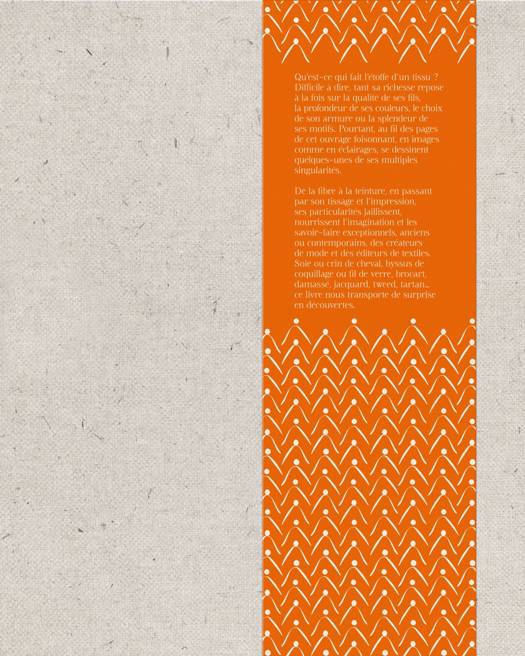 Qu’est-ce qui fait l’étoffe d’un tissu ? Difficile à dire, tant sa richesse repose à la fois sur la qualité de ses fils, la profondeur de ses couleurs, le choix de son armure ou la splendeur de ses motifs. Pourtant, au fil des pages de cet ouvrage foisonnant, en images comme en éclairages, se dessinent quelques-unes de ses multiples singularités. De la fibre qui le constitue, à la teinture, en passant par son tissage et l’impression, ses particularités jaillissent, nourrissent l’imagination et les savoir-faire exceptionnels, anciens ou contemporains, des créateurs de mode et des éditeurs de textiles. Soie ou crin de cheval, byssus de coquillage ou fil de verre, brocart, damassé, jacquard, tweed, tartan…ce livre nous transporte de surprise en découvertes.