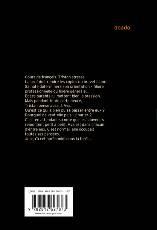 Alors qu'il attend sa copie de brevet blanc, Tristan stresse, sa note va peser lourd dans son orientation. Trop mauvaise = filière professionnelle. Pas trop mauvaise = filière générale. Et alors qu'il attend, Tristan pense à Ava. Qu'est-ce qui a bien pu se passer entre eux ? Pourtant, c'était bien au début. Alors pourquoi, elle ne veut plus lui parler ? Au fond de lui, Tristan sait. Et c'est en attendant cette note, celle qui fera prendre ou pas un virage à sa vie d'ado, que les souvenirs remontent petit à petit. Ava est dans tous. C'est normal, Ava occupait toutes ses pensées. Ava occupe toujours ses pensées...