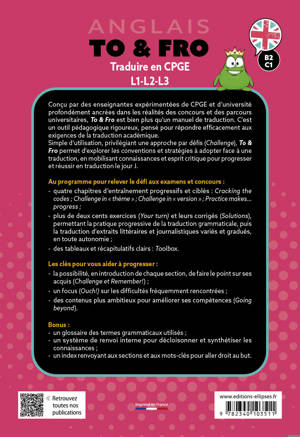 Simple d’utilisation, pratique, privilégiant une approche par « challenge », To & Fro permet d’explorer une à une les principales difficultés rencontrées lors d’une traduction, de mobiliser ses connaissances et son esprit critique pour progresser et réussir sa traduction le jour J.