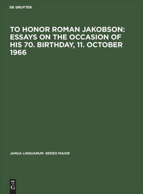 To Honor Roman Jakobson: Essays on the Occasion of His 70. Birthday, 11. October 1966