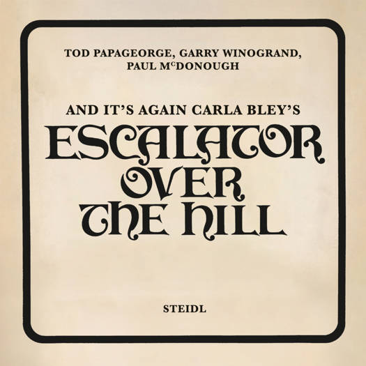 In January 1967, jazz composer Carla Bley (1936-2023) received a poem in the mail from a writer friend of hers, Paul Haines. As she later said, it "fit mysteriously with a piece of music I was working on ... when I told [Paul] how amazing this was, we decided to write an opera together." In 1971, the result of this collaboration, Escalator Over the Hill, was released. The album was named Jazz Album of the Year by Melody Maker in 1972 and awarded the Grand Prix du Disque in 1973. Accompanying the LP, a catalog of pictures of the musicians and recording sessions was made by photographers Tod Papageorge (who also sings on the album), Garry Winogrand and Paul McDonough. And It's Again includes a selection of those photographs alongside Bley's narrative-chronicle of the making of the album. This booklet is published alongside a newly pressed three-LP set of the original album.