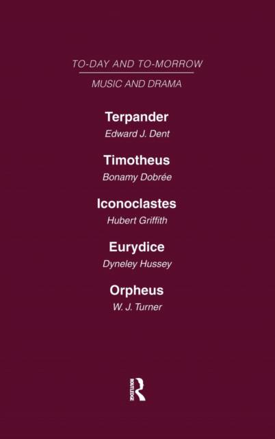 Today and Tomorrow Volume 24 Music and Drama re-issues works by some of the most well known critics in music and drama from the early twentieth century. They include Terpander, Or Music and the Future, Timotheus the Future of the Theatre, Iconoclastes, Or The Future of Shakespeare, Eurydice, Or The Nature of Opera and Orpheus Or the Music of the Future.