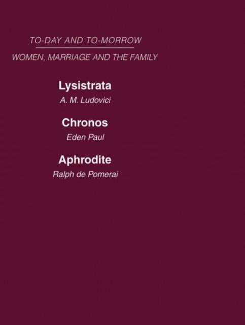 Today and Tomorrow Volume 4 Women, Marriage and the Family reprints the titles Lysistrata, or Woman's Future and Future Woman by A M Ludovici, Chronos Or The Future of the Family by Eden Paul and Aphrodite Or The Future of Sexual Relationships by Ralph de Pomerai. The volumes examine the structure and disintegration of the family in the early twentieth century, sexual emancipation of women and relations between the sexes.