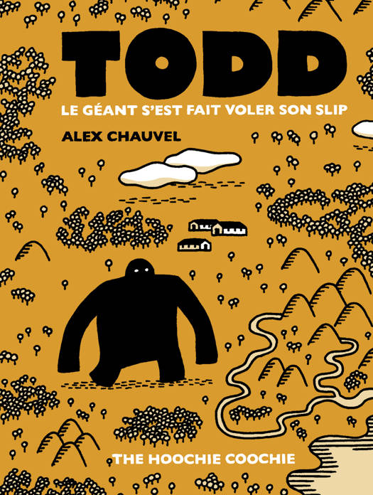 Initialement publié en 2017 et rapidement épuisé, Todd le Géant s’est fait voler son slip est le premier livre d’Alex Chauvel aux éditions The Hoochie Coochie. On y suit la quête de Todd le Géant pour retrouver son slip, son seul bien, à travers un monde d'heroïc-fantasy minimaliste peuplé d’étranges créatures. Dans ses péripéties, Todd est accompagné par de multiples compagnons : son frère Ned, le Chat, Ringo la chouette qui parcourt le monde pour écouter les nouvelles, l’érudit et mystérieux Capitaine… Pourtant, alors que Todd poursuit sa recherche, il devra faire le deuil de toute possession matérielle, car un grave danger apparaît, qui menace de dévorer toutes les énergies du monde. Dans cette aventure, l’auteur propose donc aux lecteurs de réfléchir, avec Todd, à des questions philosophiques, mythologiques voire ésotériques, tout en usant de son humour et d’un trait de crayon minimaliste.