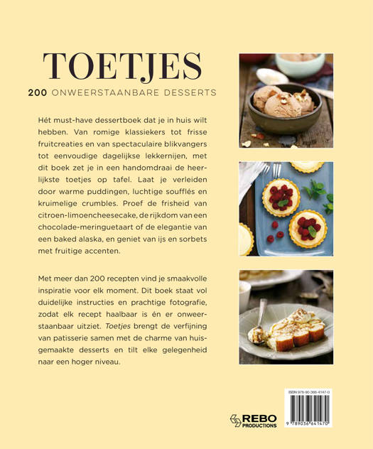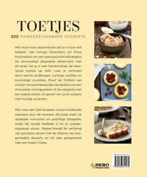 Met meer dan 200 recepten vind je smaakvolle inspiratie voor elk moment. Dit boek staat vol duidelijke instructies en prachtige fotografie, zodat elk recept haalbaar is én er onweerstaanbaar uitziet. Toetjes brengt de verfijning van patisserie samen met de charme van huisgemaakte desserts en tilt elke gelegenheid naar een hoger niveau.
