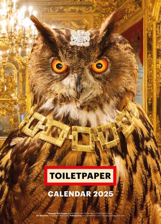 The upcoming Toiletpaper wall calendar 2025 features photographs conceived by Maurizio Cattelan and Pierpaolo Ferrari taken from their magazine Toiletpaper, an image-only publication devoted to the combination of the height of attractiveness with that of ugliness.