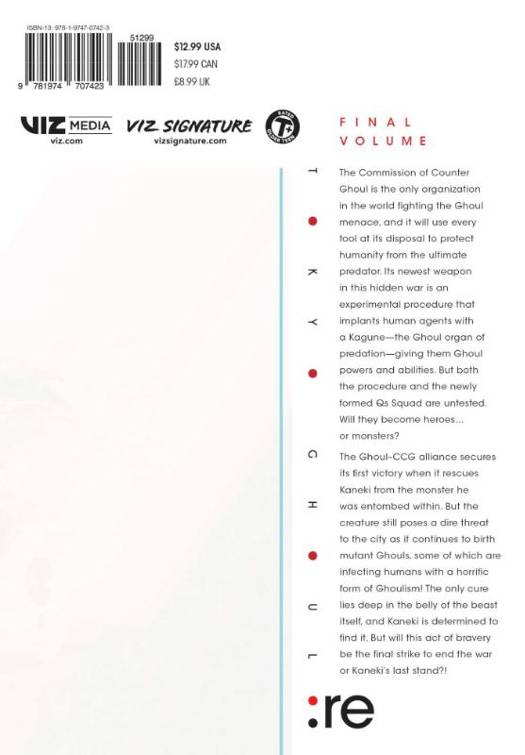 The Ghoul-CCG alliance secures its first victory when it rescues Kaneki from the monster he was entombed within. But the creature still poses a dire threat to the city as it continues to birth mutant Ghouls, some of which are infecting humans with a horrific form of Ghoulism! The only cure lies deep in the belly of the beast itself, and Kaneki is determined to find it. But will this act of bravery be the final strike to end the war or Kaneki's last stand?!