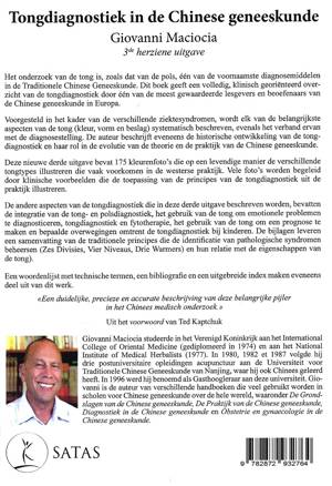 Het onderzoek van de tong is, zoals dat van de pols, één van de voornaamste diagnosemiddelen in de Traditionele Chinese Geneeskunde. Dit boek geeft een volledig, klinisch georiënteerd over - zicht van de tongdiagnostiek door één van de meest gewaardeerde lesgevers en beoefenaars van de Chinese geneeskunde in Europa.