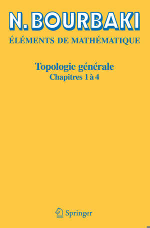 Ce premier volume du Livre de Topologie générale, troisième Livre du traité, est consacré aux structures fondamentales en topologie, qui constituent les fondement de l'analyse et de la géométrie. Il comprend les chapitres: 1. Structures topologiques; 2. Structures uniformes; 3. Groupes topologiques; 4. Nombres réels.