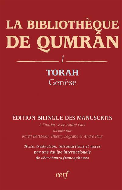 Entre 1947 et 1956, les restes de rouleaux datés du IIIe siècle av. J.-C. ont été retrouvés à proximité de la mer Morte. Cette édition des manuscrits de Qumrân propose une organisation thématique en fonction du lien entre les textes de Qumrân et les livres de la Bible hébraïque. Le premier volume regroupe les manuscrits évoquant la Genèse : création du monde, déluge, etc.